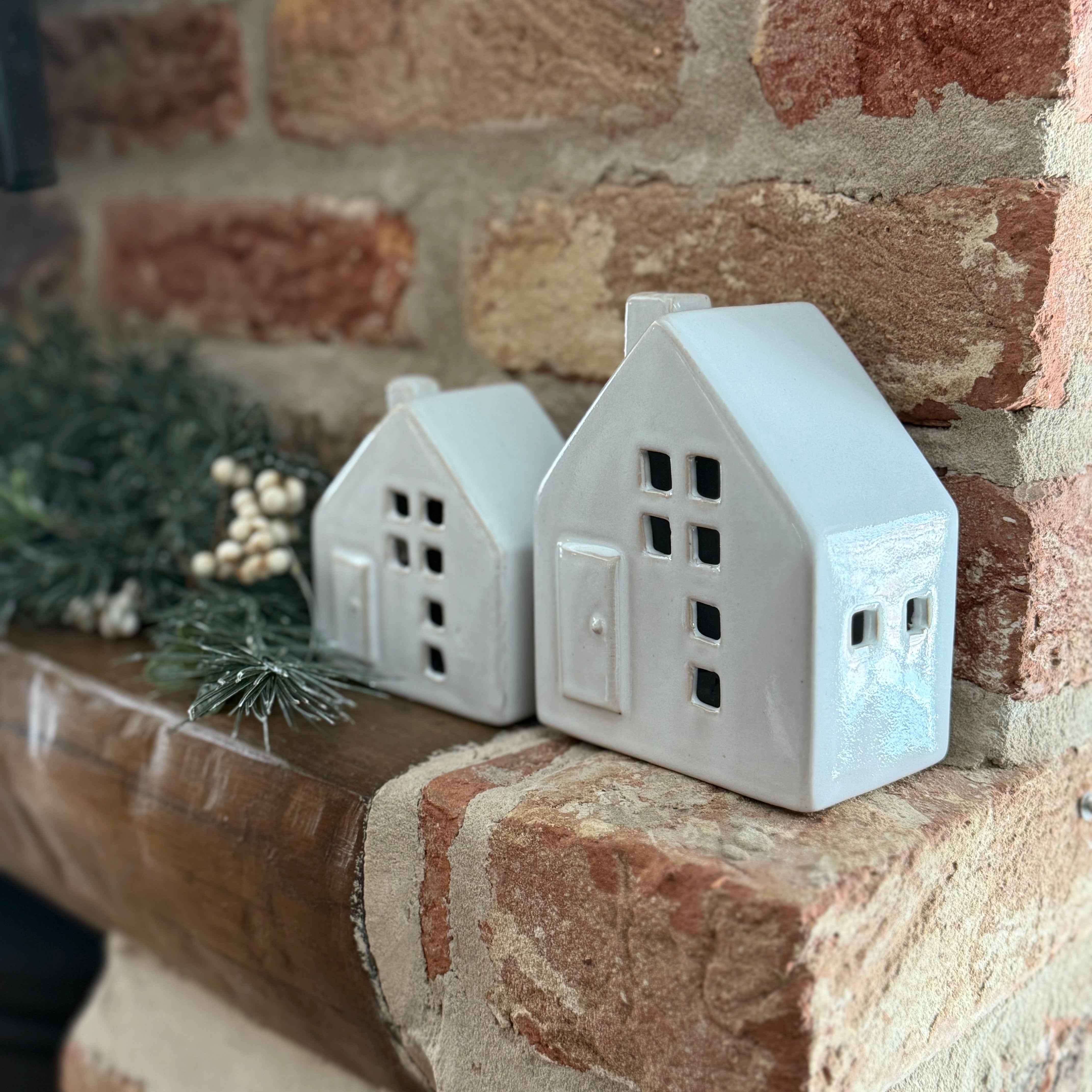 Our elegant white ceramic houses bring a refined decorative touch to any living space. Crafted with attention to detail, the pre-lit LED feature enhances their charm by casting a warm glow.