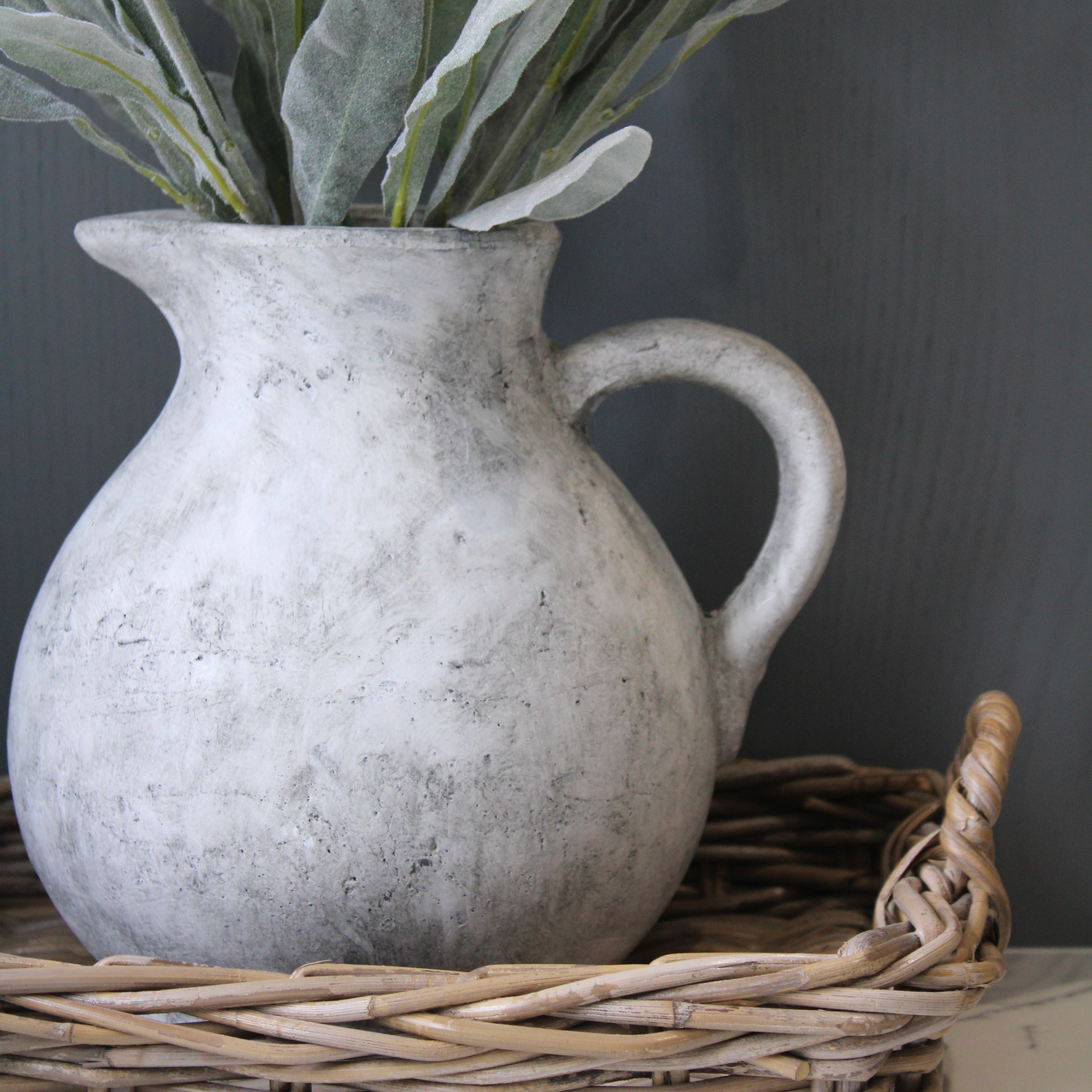 Experience the beauty of The Lilliana Jug. Handcrafted with a Mediterranean charm. With its weathered finish and graceful proportions, it is a perfect addition to any home décor.