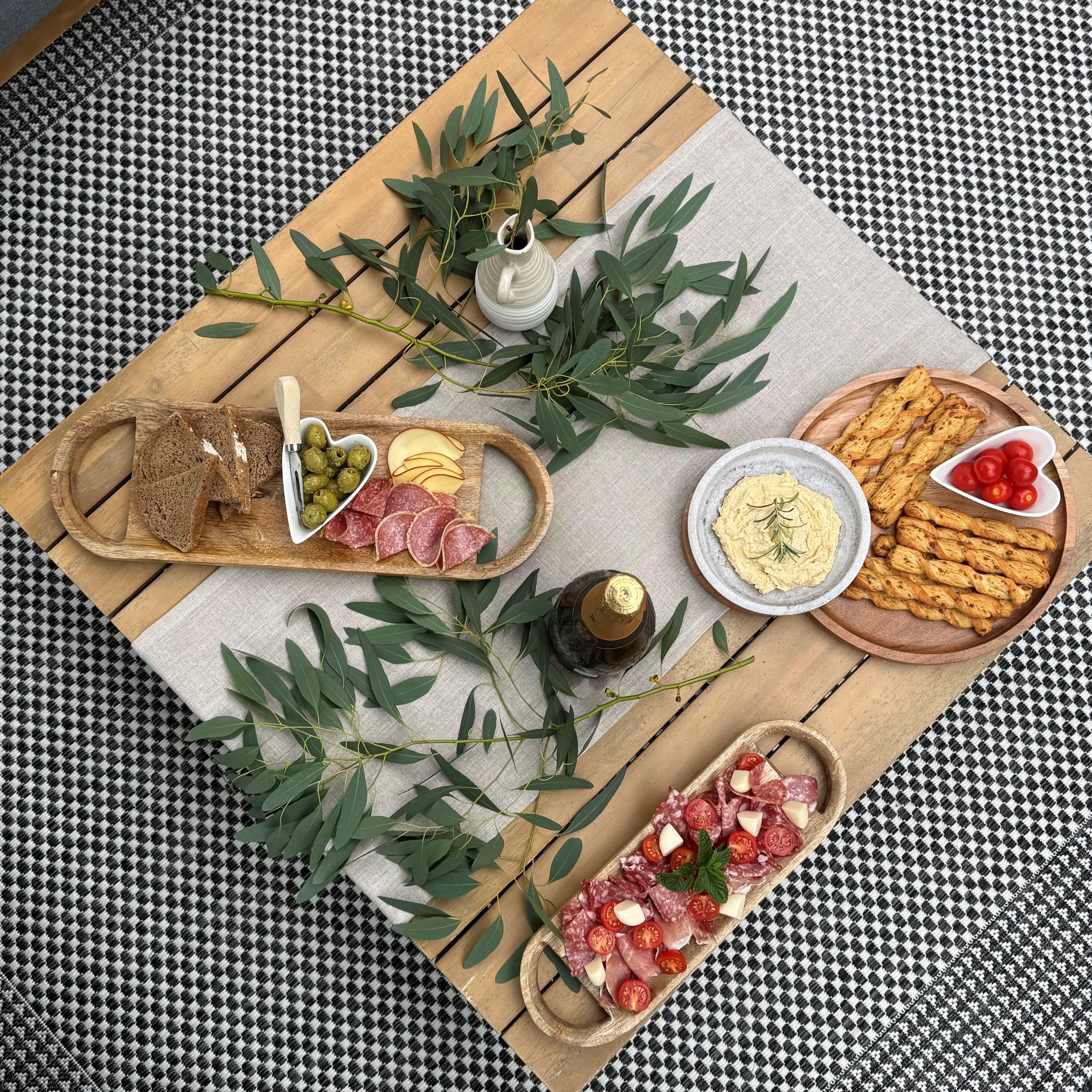 Our wooden serving boards are a must-have for any kitchen or entertaining need! Made from 100% Mango wood , its elegant design is sure to impress your guests. Its versatility and timeless style make it perfect for serving alfresco dining on warm summer evenings.
