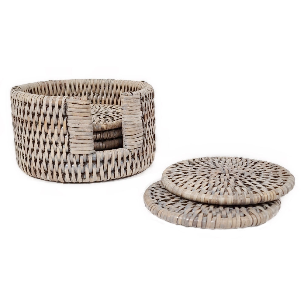 Add a touch of sophistication to your table setting with our 6 Piece Round Coaster Set. Made from durable grey rattan core material, these stylish and practical coasters come with a convenient holder. Protect your furniture while maintaining a sleek and stylish look. Perfect for enhancing your dining experience or as a functional addition to your side table.