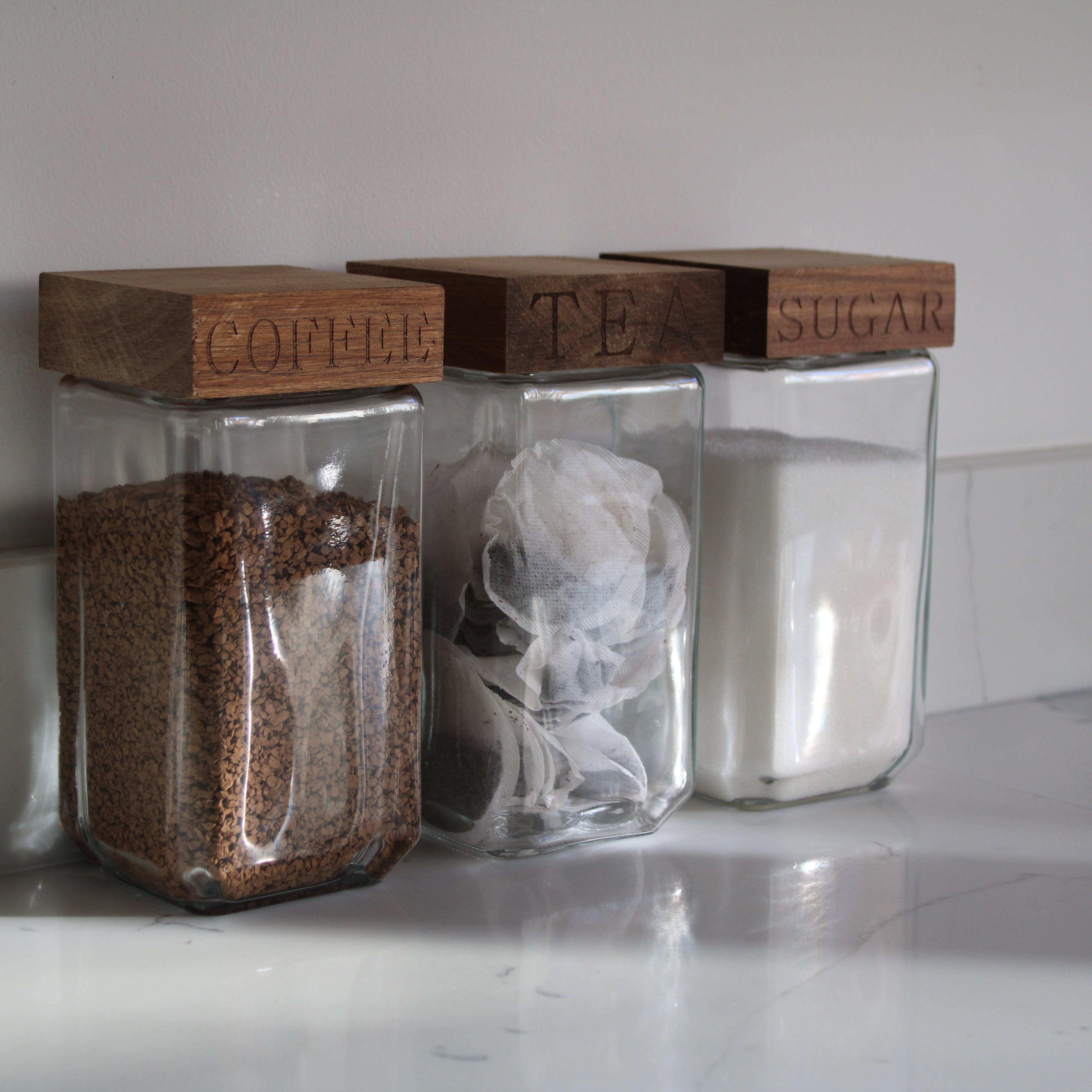 Upgrade your kitchen Décor with our Glass and Wooden Jar set! Made from Glass and Acacia wood, this set offers both functionality and sophistication. Perfect for storing your tea, coffee, and sugar essentials.